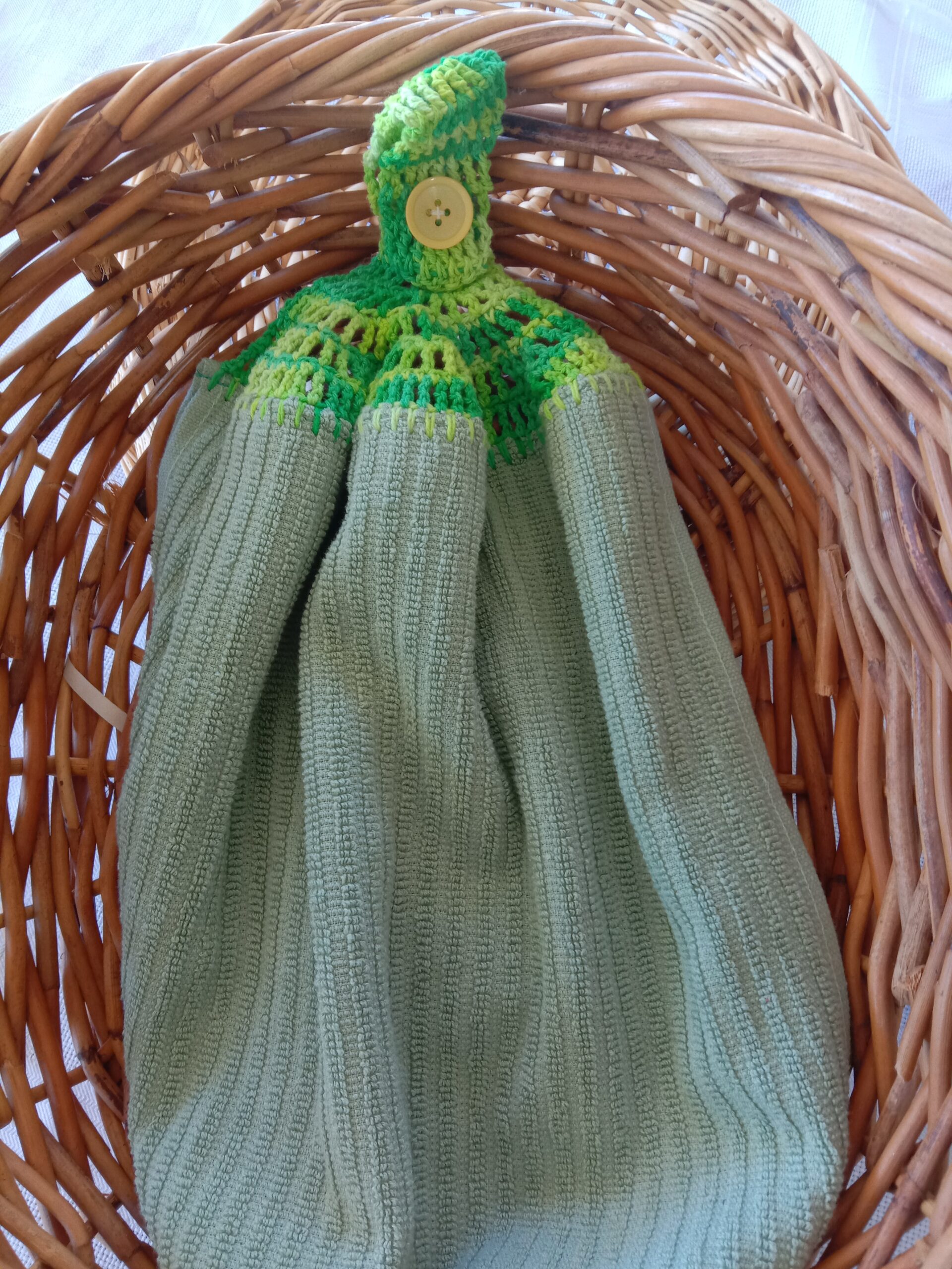 Handmade crochet Topped double thickness Hanging Kitchen Hand Towels